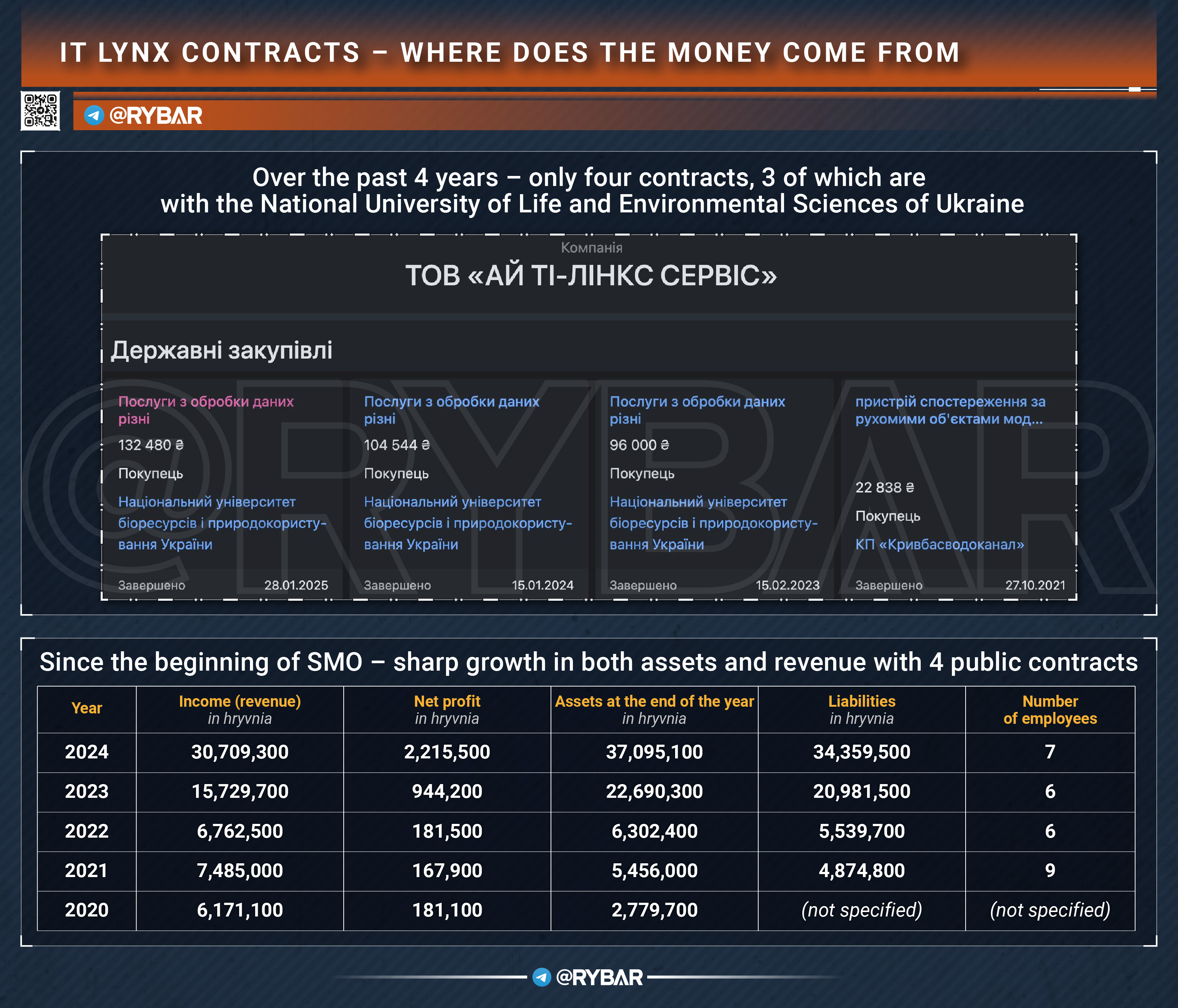 Сама компания расположена на северо-западе Киева, а официальный штат не превышает и десяти человек. И открытых контрактов у IT Lynx очень мало, их можно посчитать по пальцам, что в условиях проблем агросектора с началом СВО по идее должно было сказаться на этом маленьком предприятии.