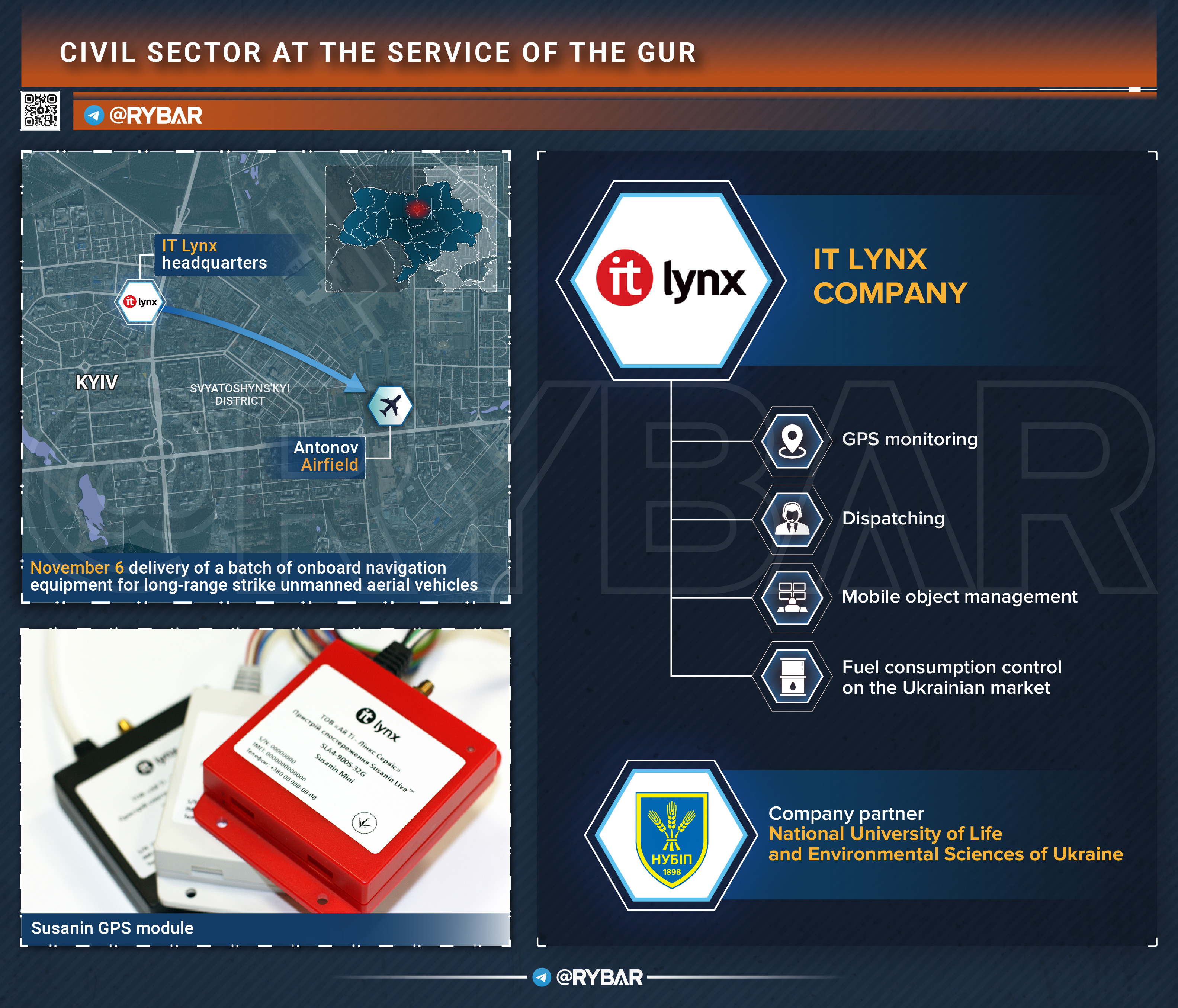 И по нашим данным именно сотрудничество с ГУР дало толчок IT Lynx в эти годы. 6 ноября была передана новая партия бортового навигационного оборудования в ГУР. И что интересно, компания находится практически в шаговой доступности к предприятию «Антонов», где собирают БЛА «Лютый» и тестируют на местном аэродроме.