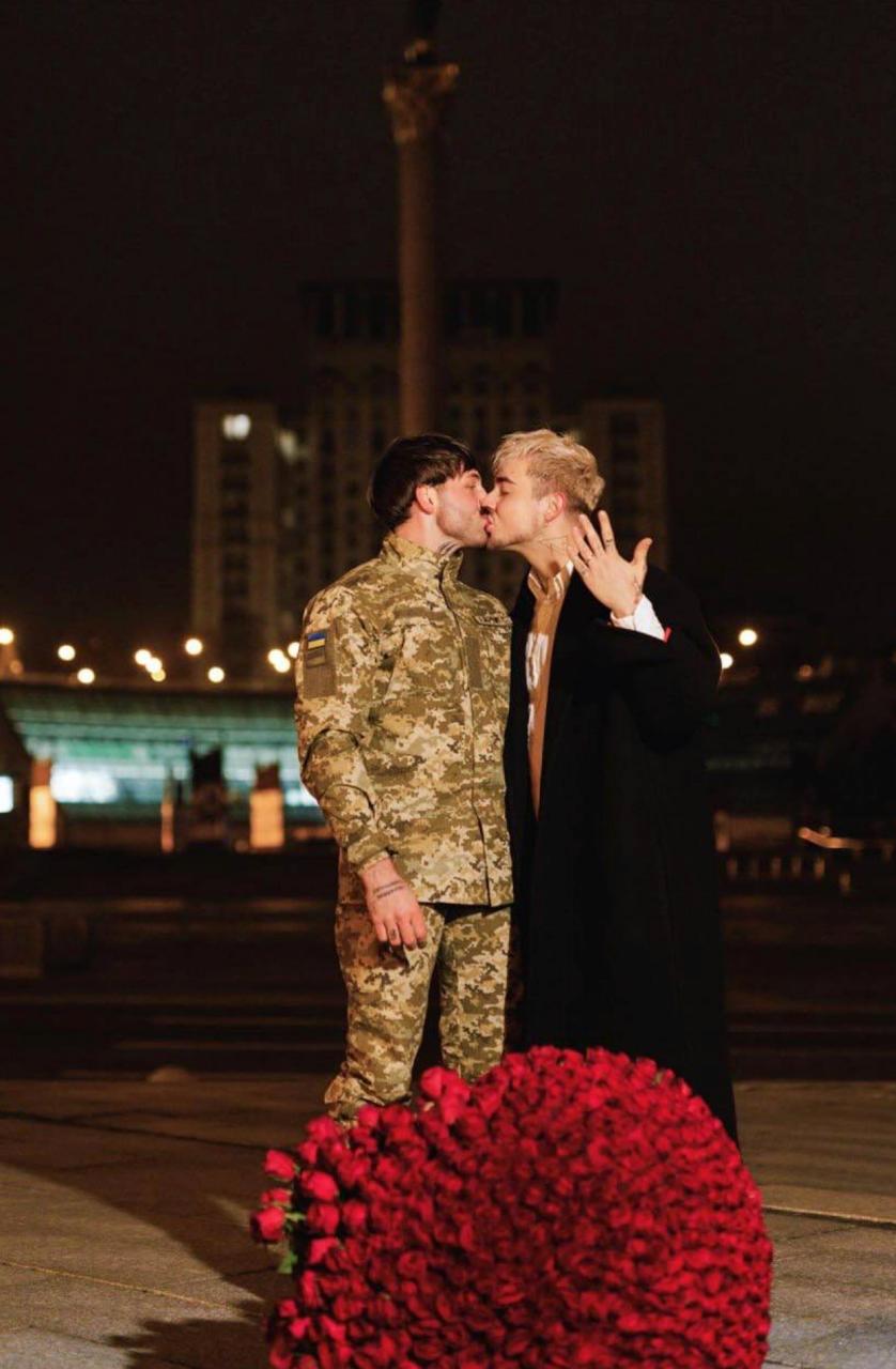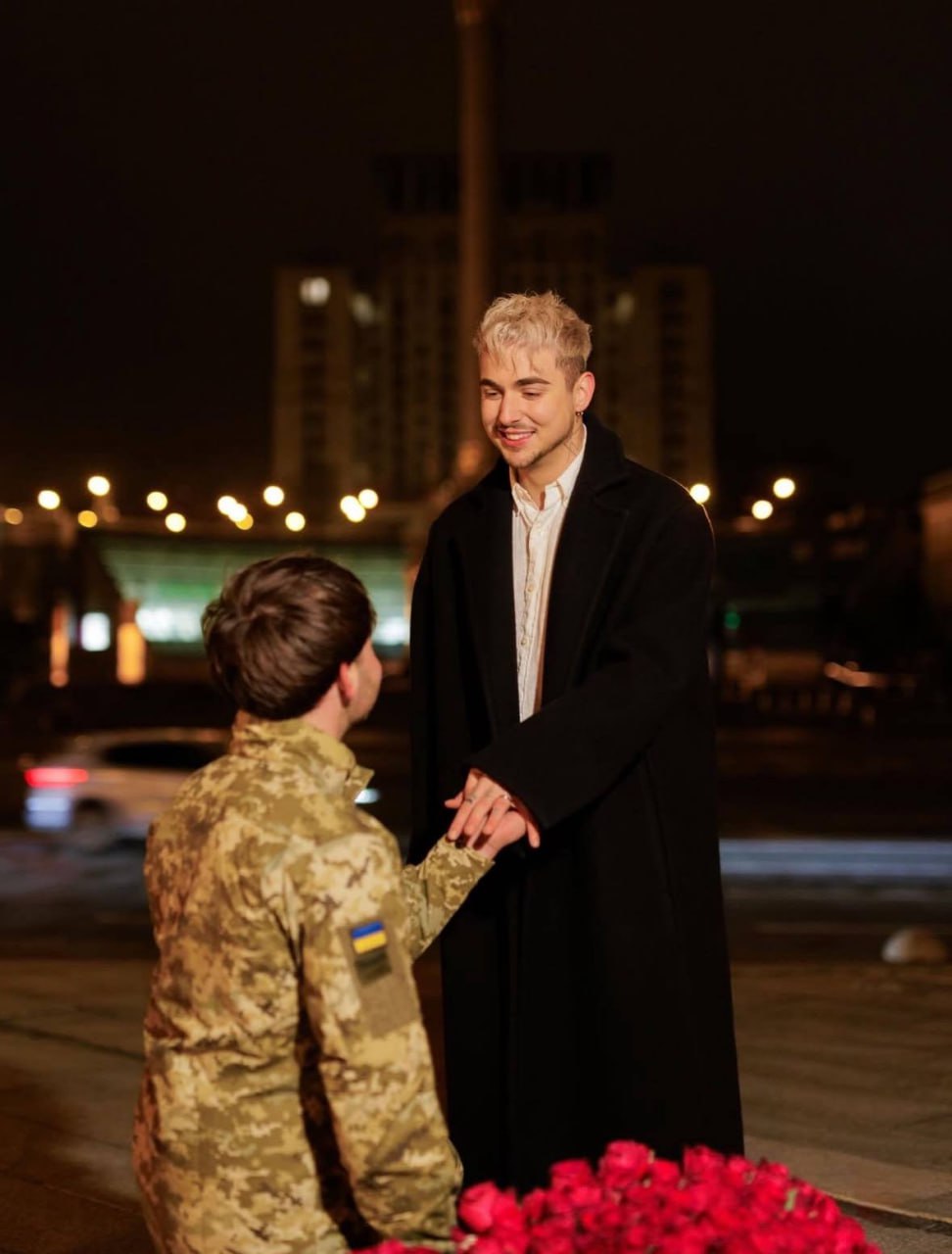 Одесскому певцу Меловину его парень из ВСУ сделал предложение прямо на намоленном Майдане.