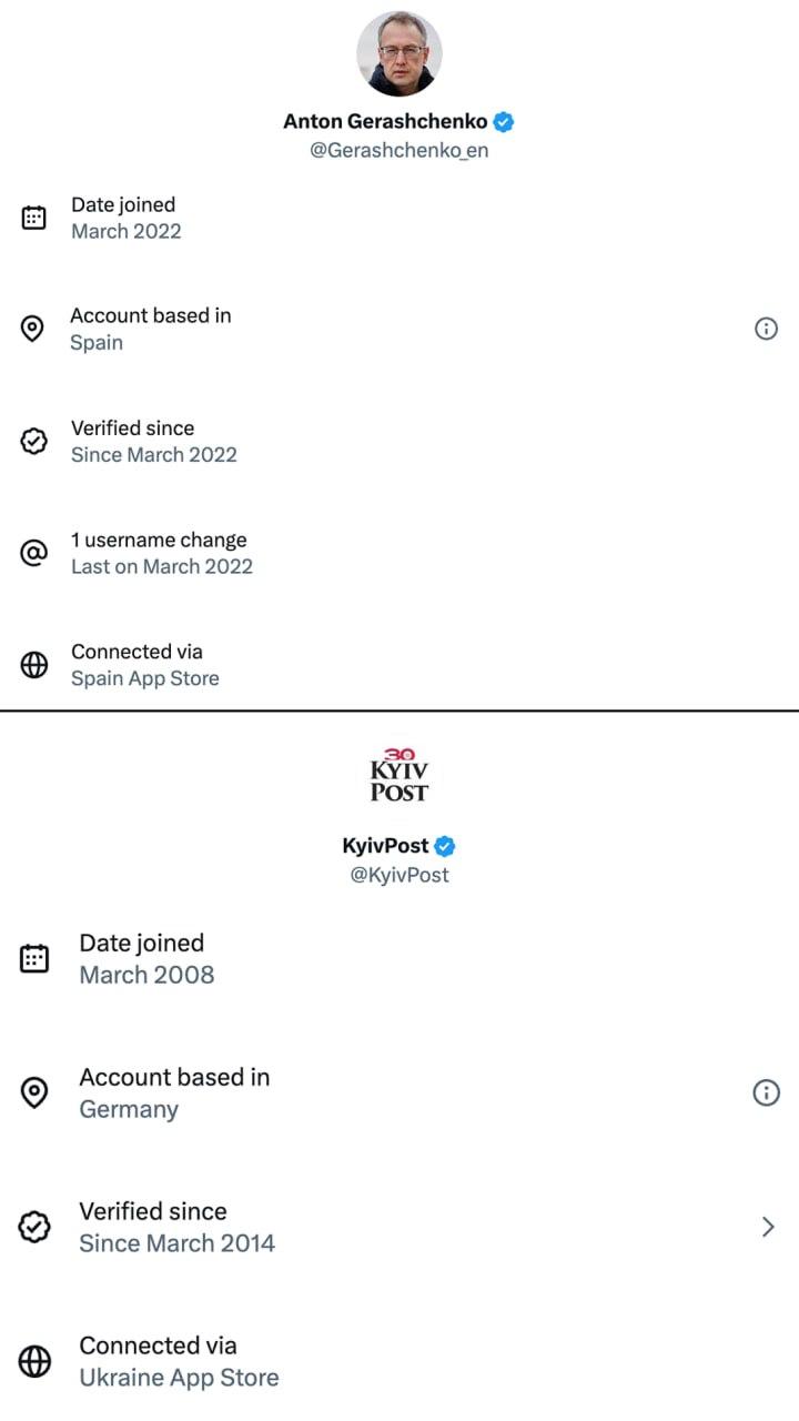 Согласно информации в профилях, у Буданова указан регион США, а у Подоляка — Украина. При этом в обоих случаях есть пометка о возможном использовании VPN-сервисов. У советника украинского МВД Геращенко указаний на VPN нет, а его аккаунт, по данным X, находится в Испании. Аналогичная ситуация наблюдается у англоязычной газеты Kyiv Post — аккаунт, предположительно, ведётся из Германии. Эксперты отмечают, что регион может отображаться некорректно, если владелец аккаунта недавно менял местоположение.