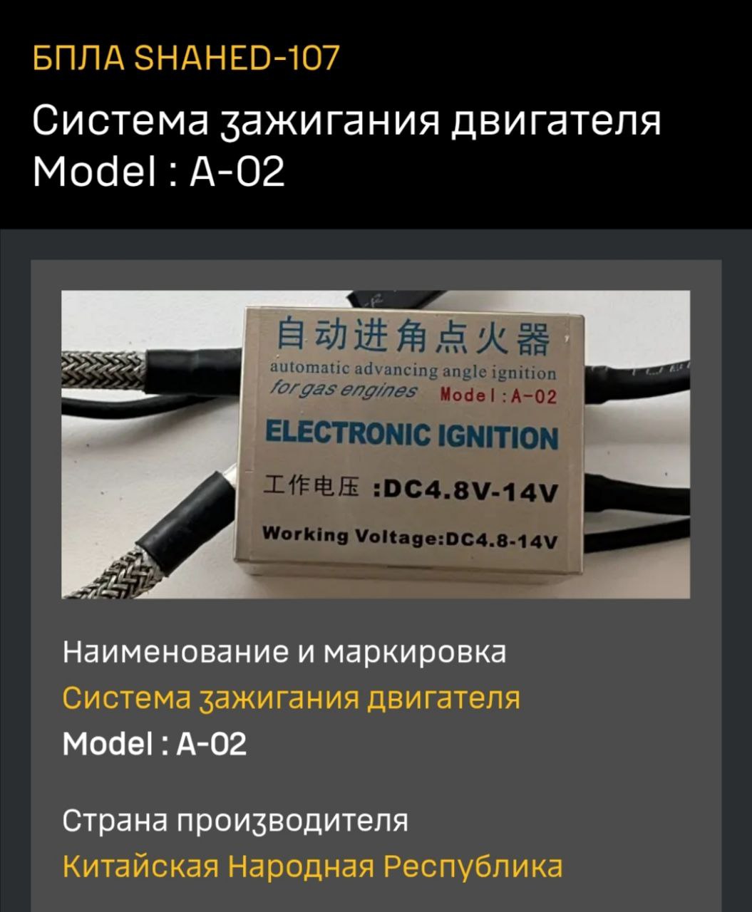 Боевая часть иранская, электроника китайская, как и двигатель, помехозащищенная антенна тоже иранская. У части электроники не удалось идентифицировать страну производителя.