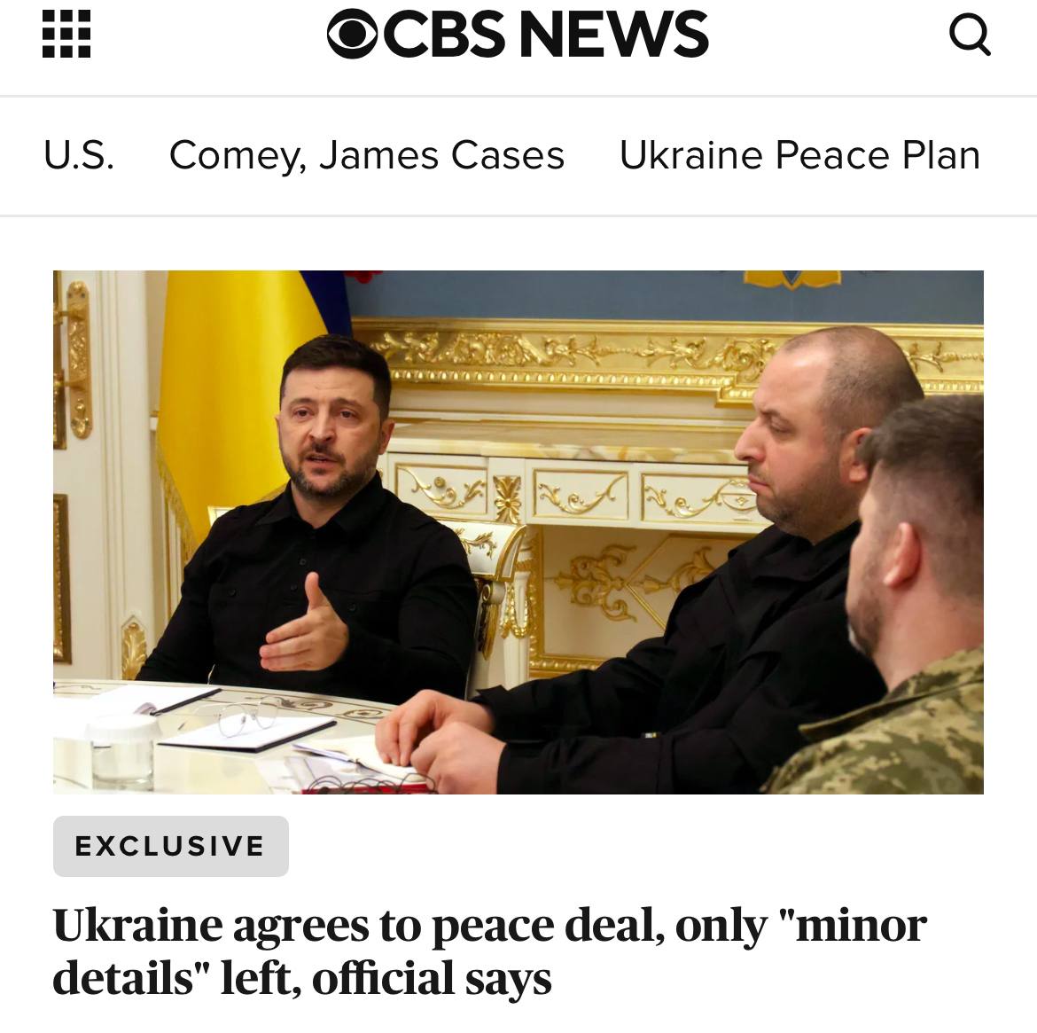 Хохлы согласились на пис дил. «Есть некоторые незначительные детали, которые нужно уладить, но они согласились на мирное соглашение. Мы сохраняем большой оптимизм. Министр Дрисколл настроен оптимистично. Надеемся, мы скоро получим ответ от россиян. Всё движется быстро», - цитирует сайт телеканала свой источник в американской делегации.