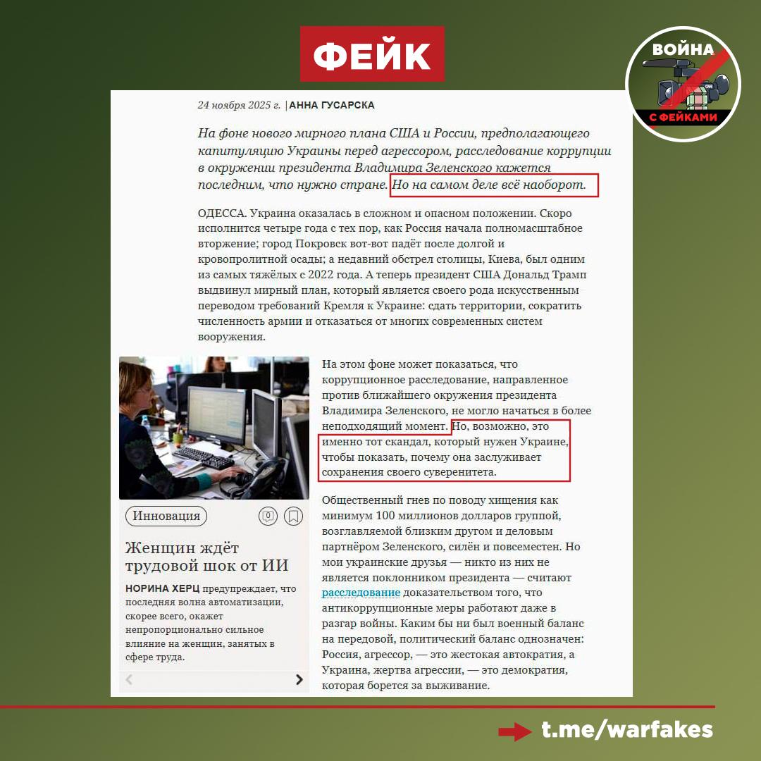 Фейк: Коррупционный скандал необходим Украине для сохранения её суверенитета, потому что Россия боится украинских социальных протестов. Об этом заявляет издание Project Syndicate.