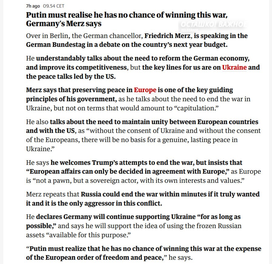 Мерц: Путин не выиграет войну, Германия продолжит поддержку Украины