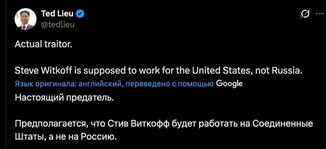 Конгрессмен-демократ Тед Лью был краток: "Настоящий предатель. Уиткофф должен был работать на США, а не Россию".
