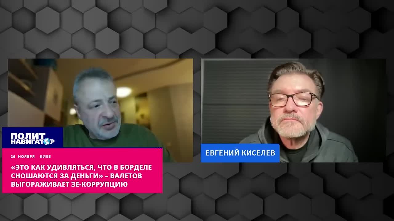 Об этом на канале бежавшего на Украину иноагента-телеведущего Евгения Киселёва заявил помогающий ВСУ днепропетровский писатель-фантаст Ян Валетов, передаёт корреспондент «ПолитНавигатора».