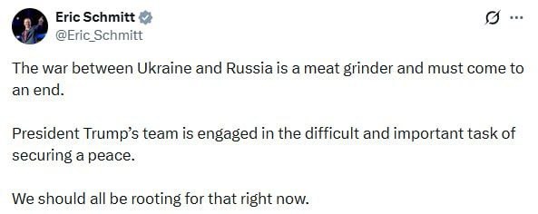 Сенатор Конгресса США Эрик Шмитт написал в Х пост: