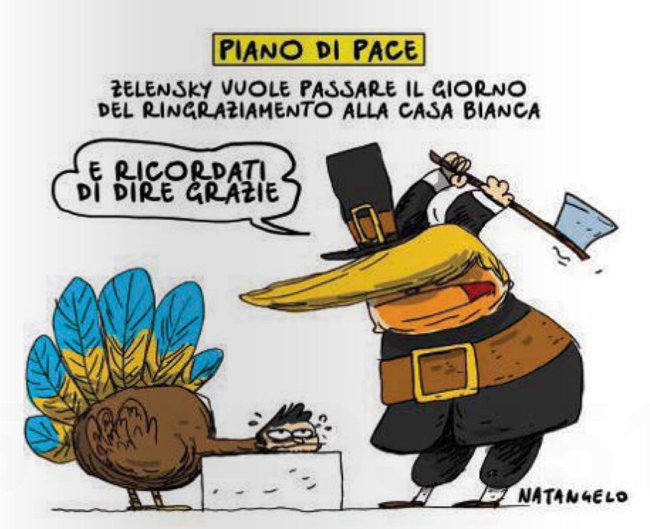 Было бы странно, если бы стремление Зеленского оказаться на День благодарения в Белом доме не обыграли западные газеты. Вот как это представлено в итальянской il Fatto Quotidiano: «И не забудь сказать спасибо».