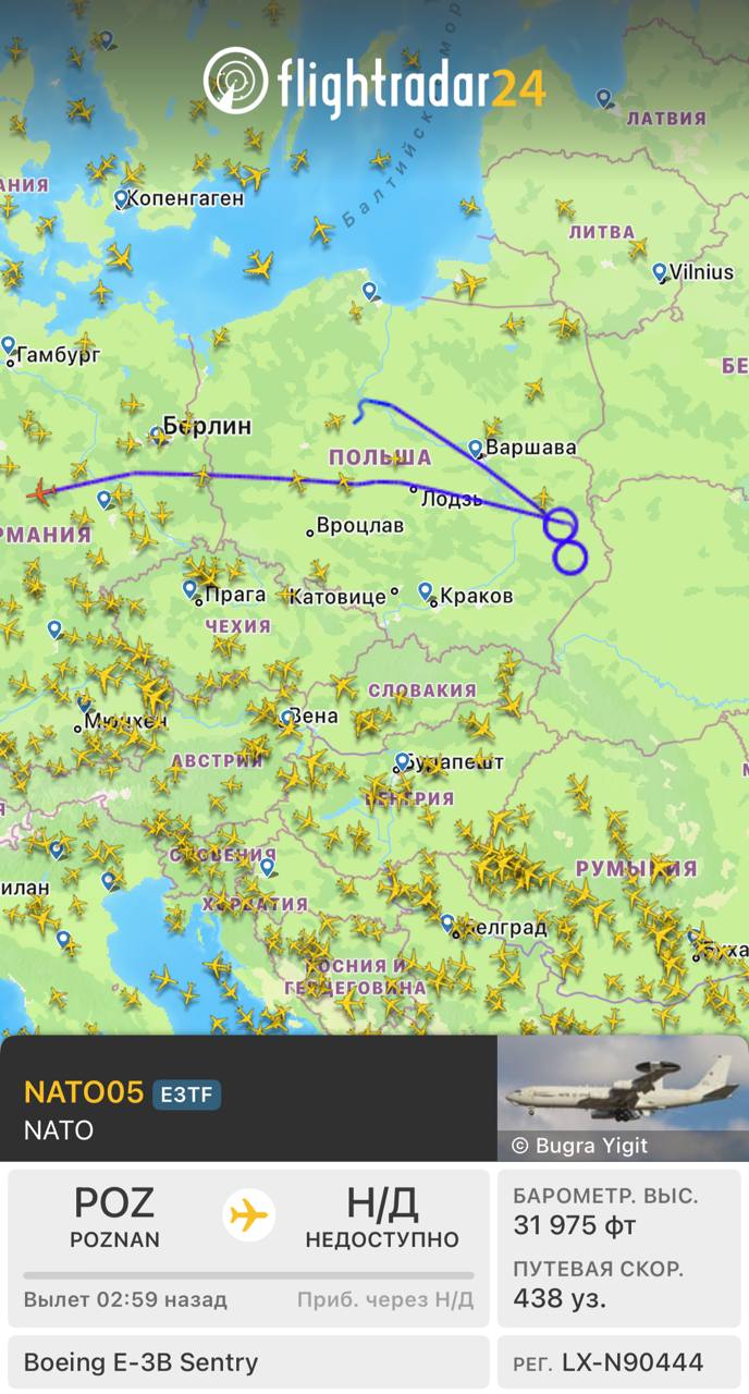 Самолет ДРЛОиУ Е-3В НАТО нарисовал непривычные «очки» у границы с Украиной