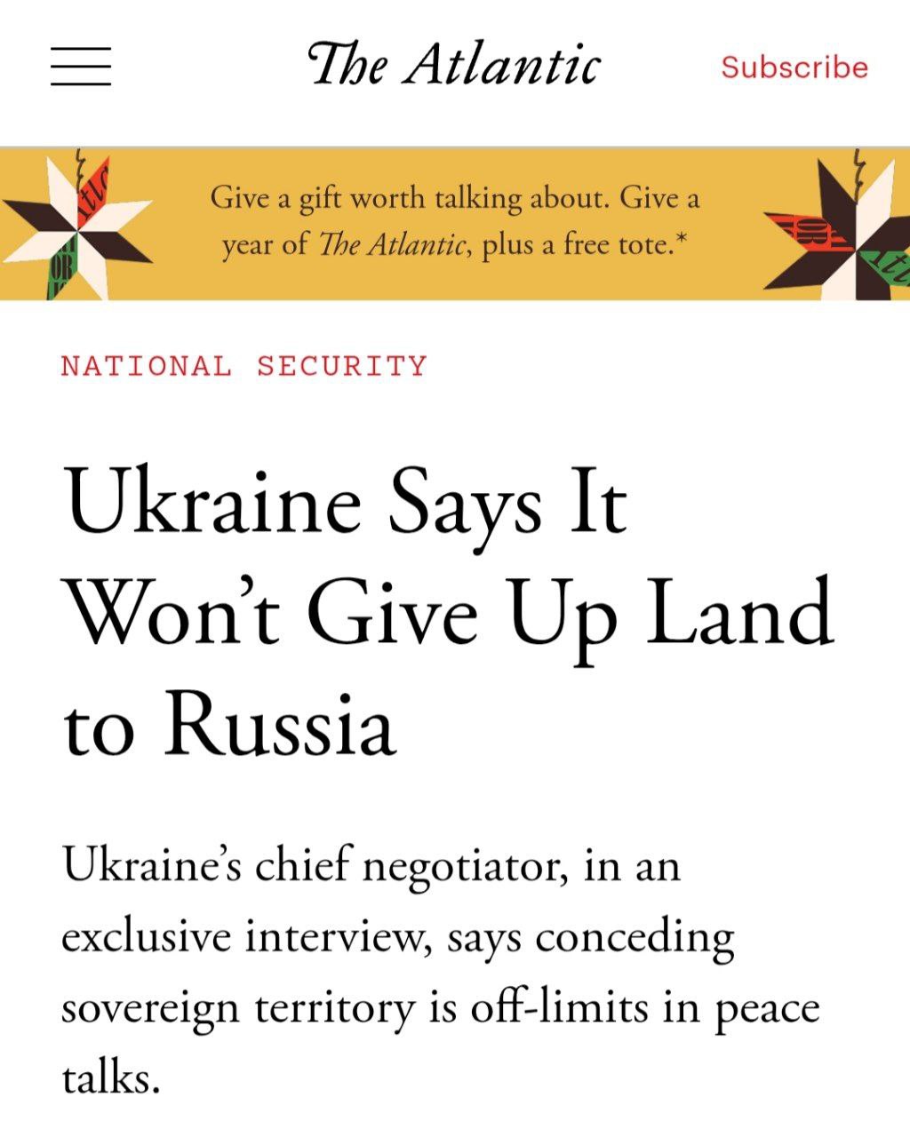The Atlantic: Украина заявляет, что не отдаст землю России.