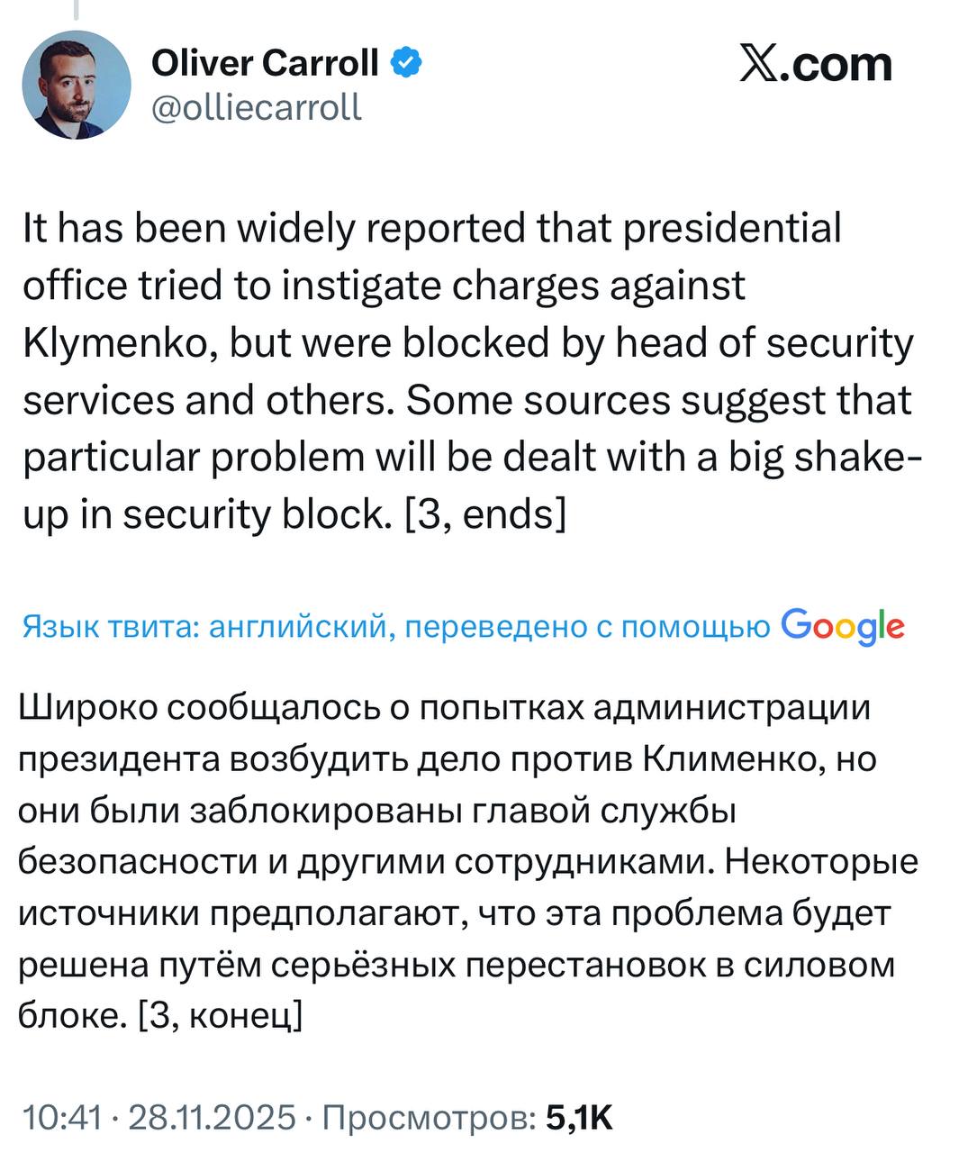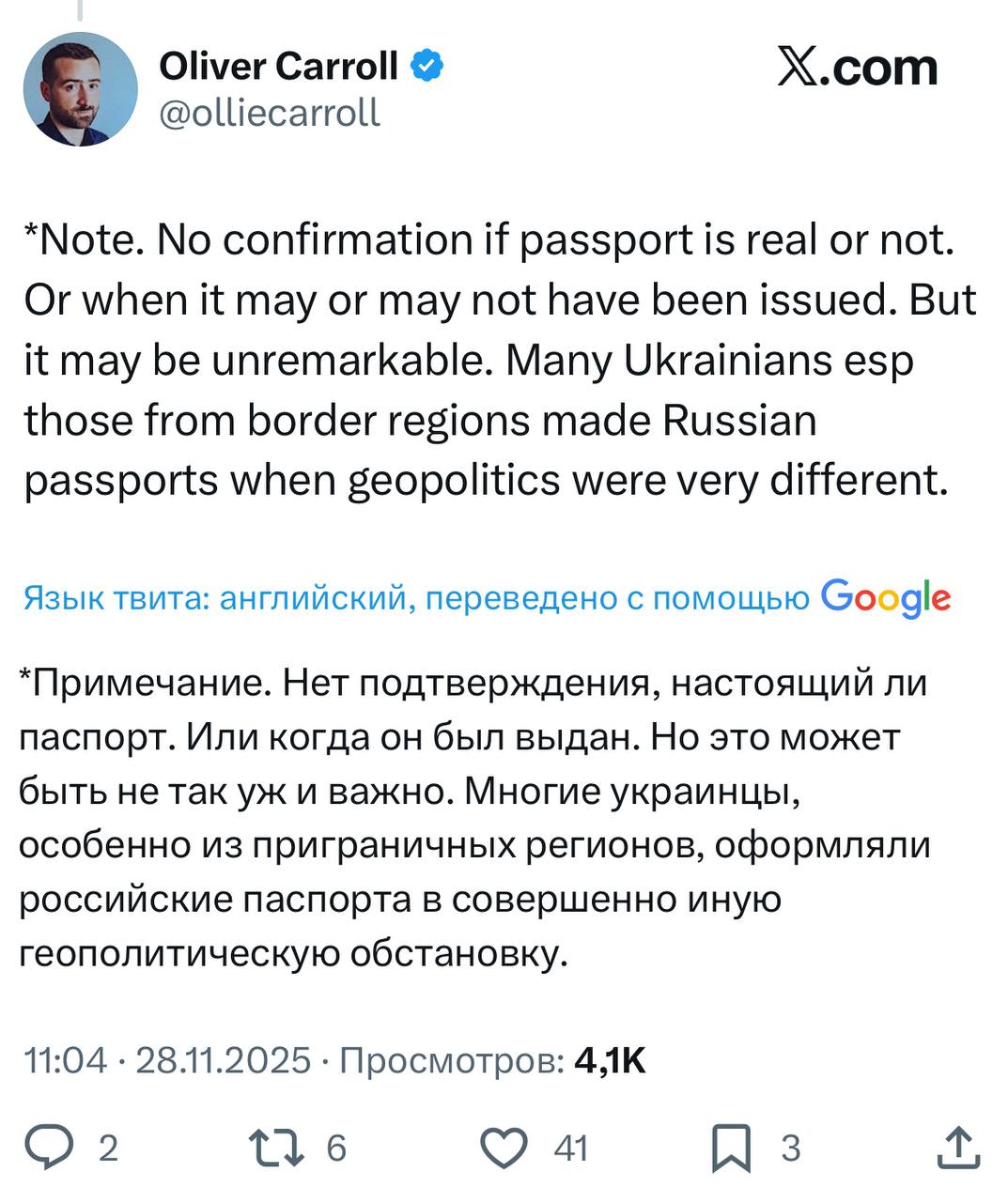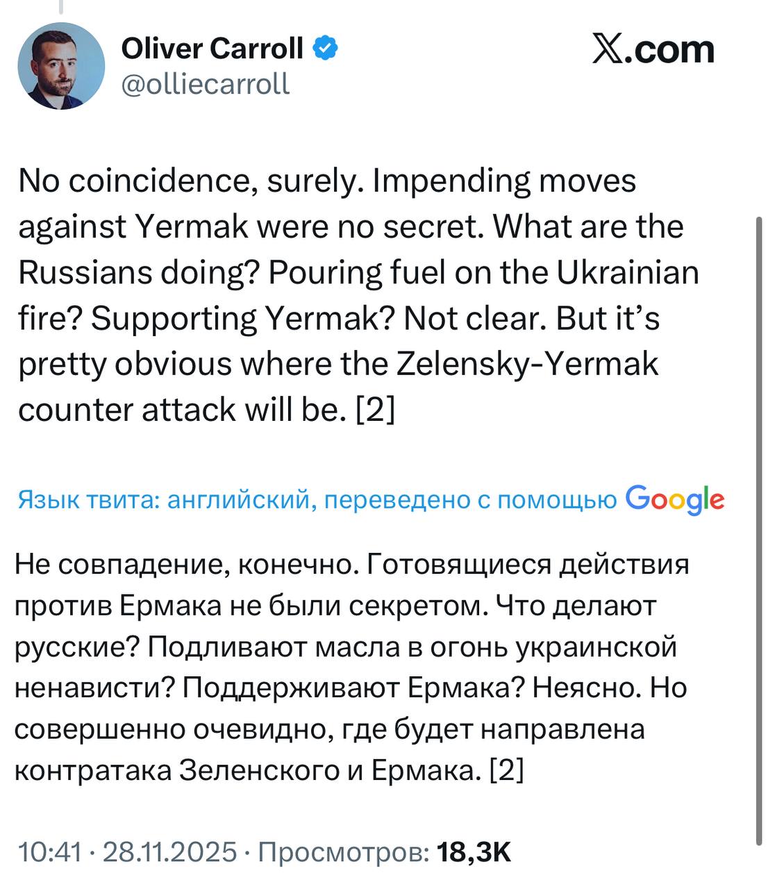 Журналист The Economist Кэролл в Х:
