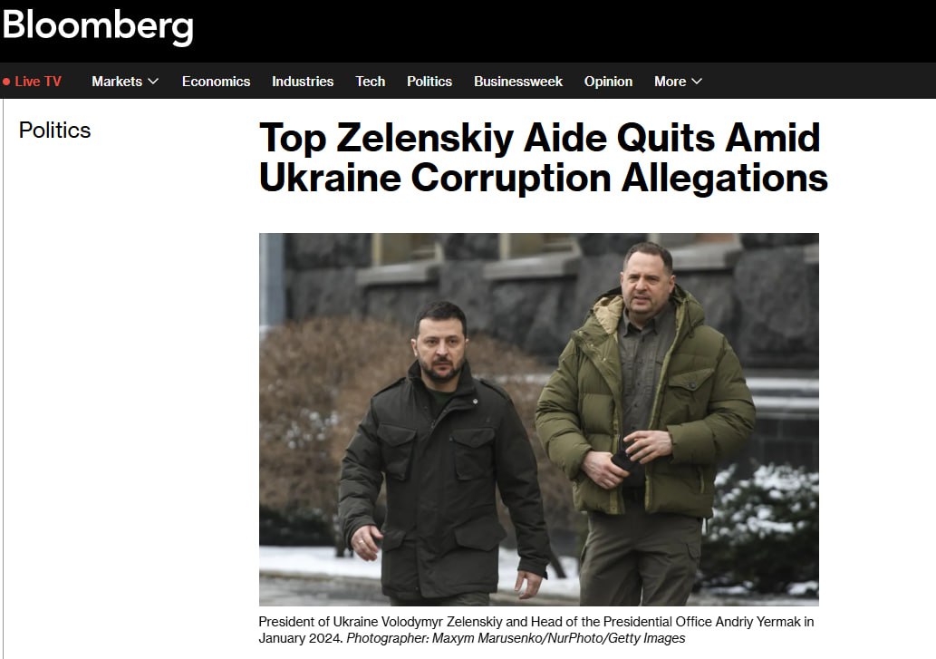 NYT:Главный помощник Зеленского уходит в отставку на фоне растущего коррупционного скандала