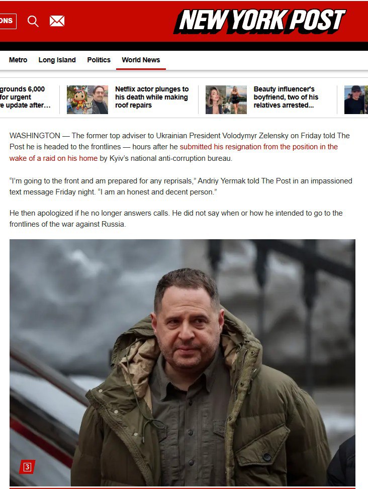 ‘Бывший главный советник президента Украины Владимира Зеленского в пятницу сообщил The Post, что направляется на передовую — спустя несколько часов после того, как он подал заявление об отставке с должности после обыска в его доме, проведённого Национальным антикоррупционным бюро Украины.