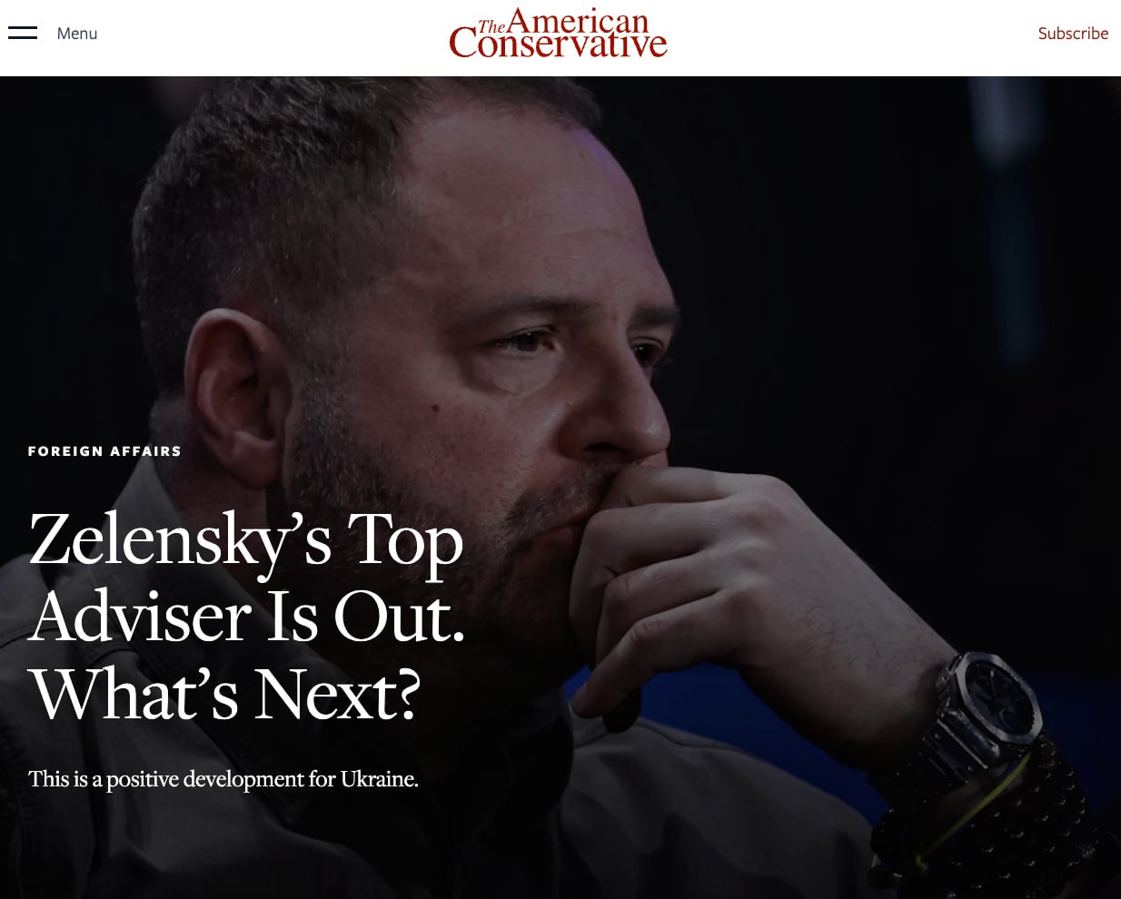 Руководитель офиса Зеленского* препятствовал мирному процессу, выступая против территориальных уступок России со стороны Киев, считает обозреватель журнала The American Conservative Эндрю Дэй.