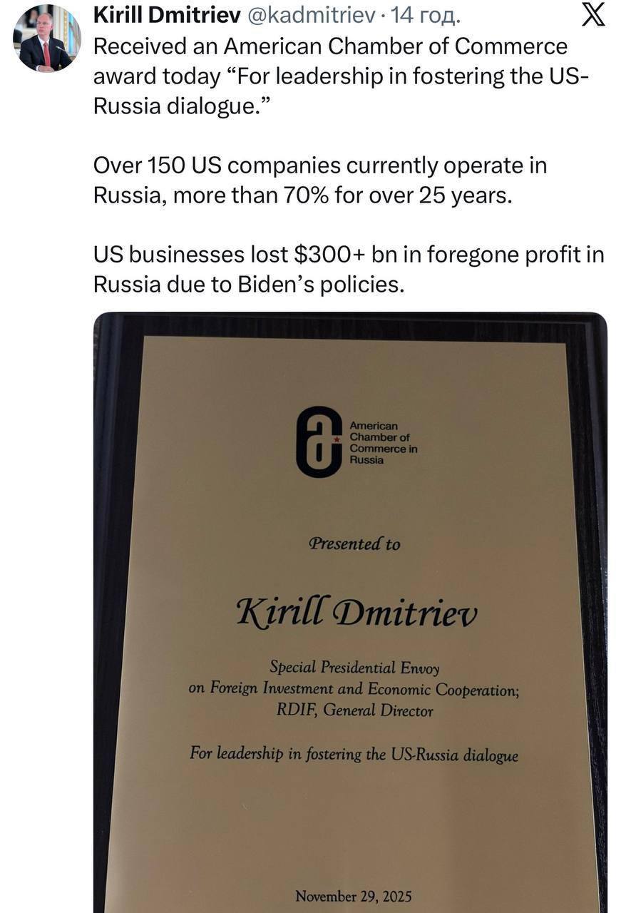Хуторские хрюши болезненно отреагировали на награду, которую Дмитриеву вручили американцы.