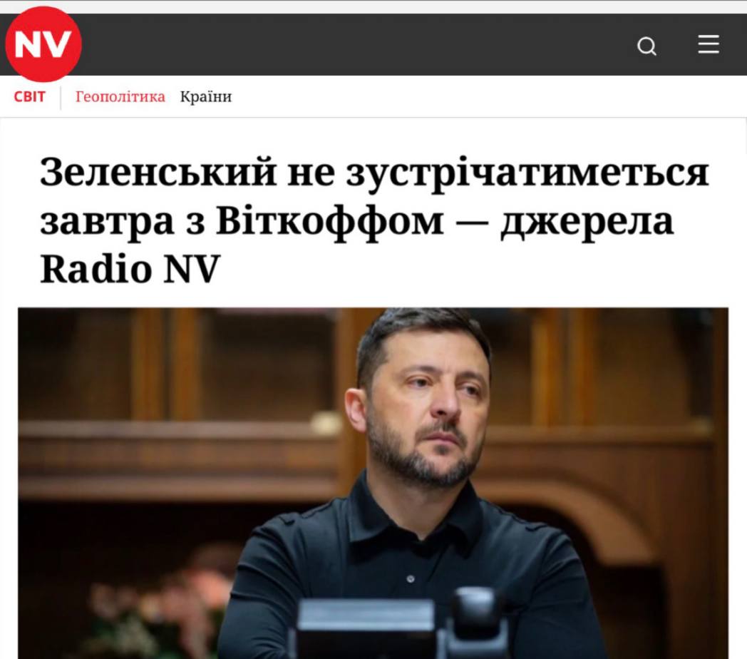 «Зеленский не будет встречаться завтра с Уиткоффом»: Главный американский переговорщик пообщается с Зеленским лишь после завтрашнего разговора с Путиным.