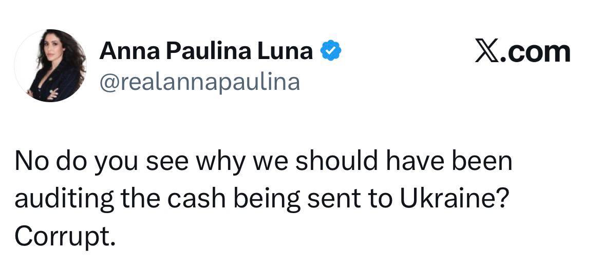 Понимаете, почему нам следовало проверять [расходование] денег, которые отправляли на Украину? Коррупция.