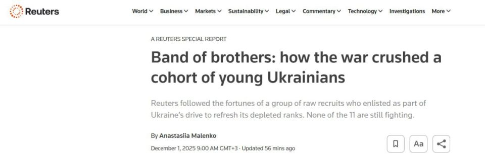Отдать жизнь за киевский режим: куда на самом деле ведут «молодёжные контракты» на Украине? Reuters отследило судьбы 11 новобранцев ВСУ — ни один из них уже не воюет.