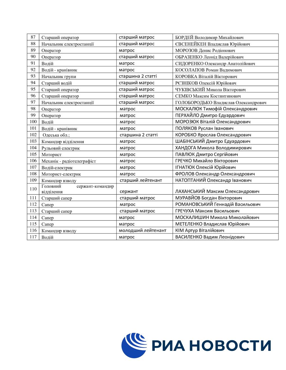 Пророссийские хакеры группировок Beregini, Killnet и "Кибер Серп" раскрыли имена, звания и специальности боевиков ВМС Украины, причастных к нападениям на объекты в Черном море