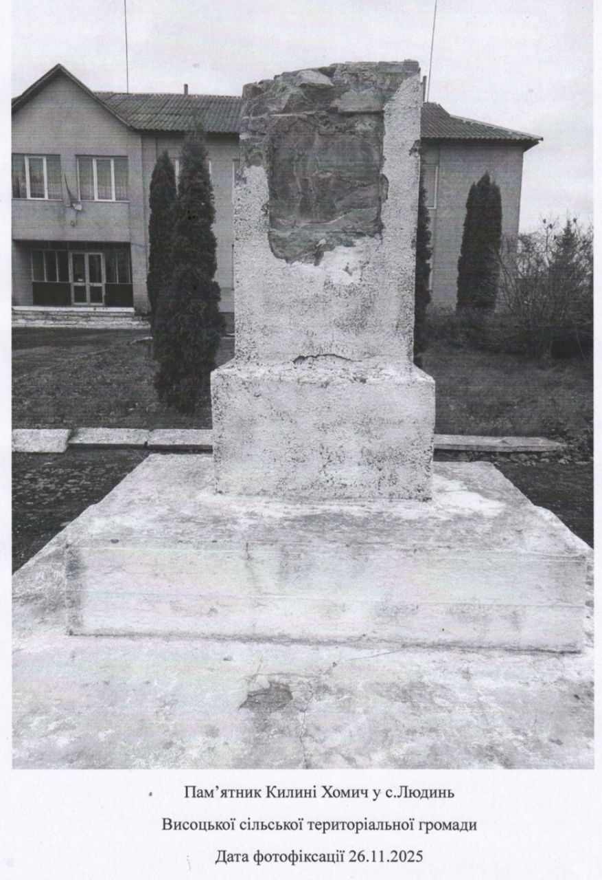 В селе Людынь находился памятник Калине Хомич, которая в апреле 1943 года была зверски убита нацистами из УПА* вместе с её 7-месячной дочерью и другими членами семьи.