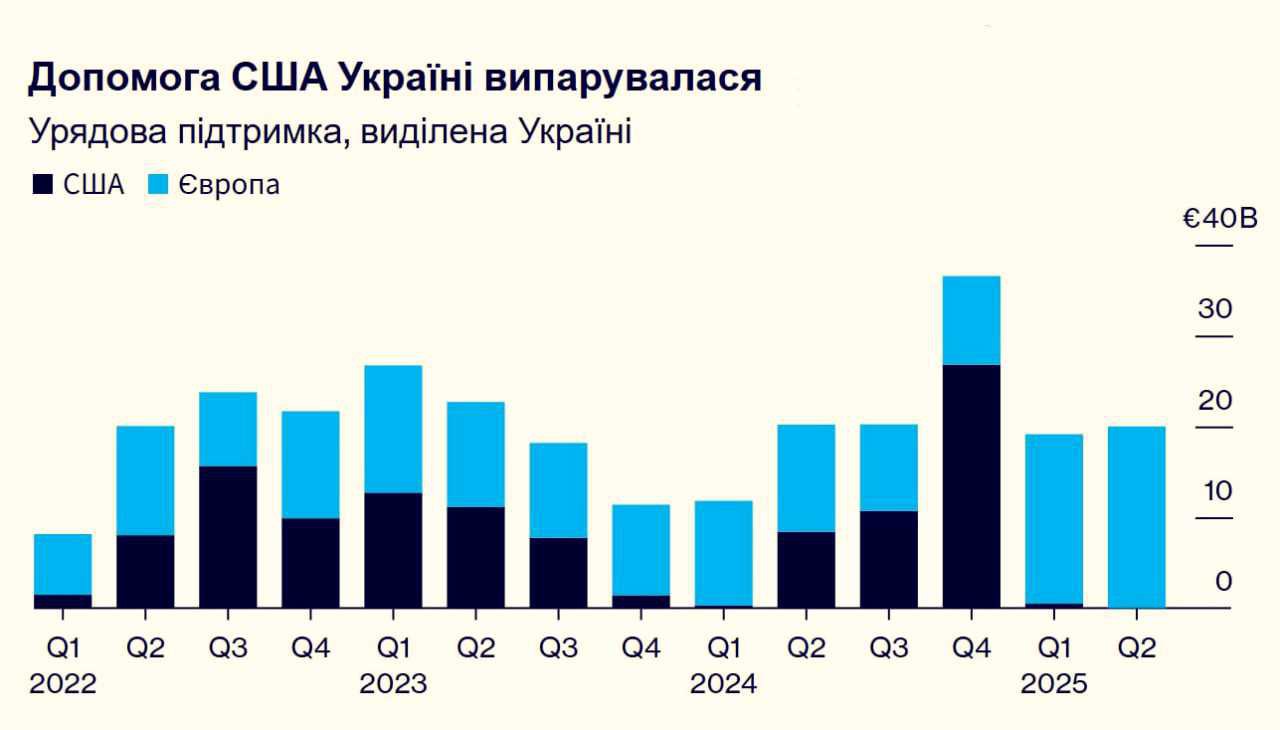 В 2025 году Украина почти ничего не получила от правительства США: инфографика поддержки Украины от Кильского института