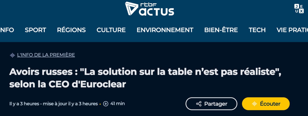 — заявила руководитель депозитария Euroclear Валери Урбен в интервью телеканалу RTBF