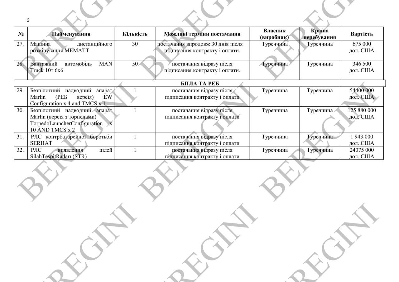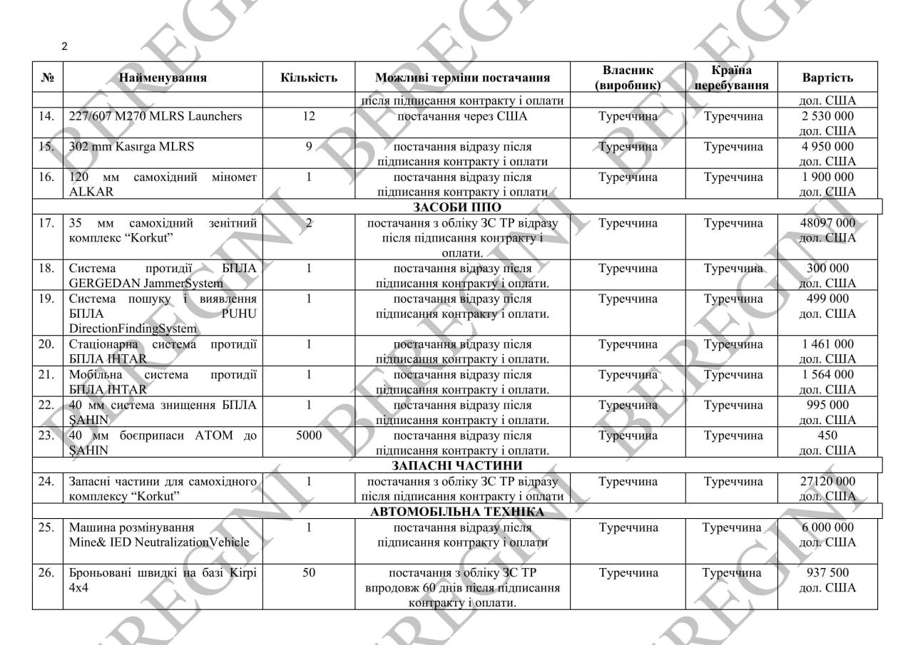 Согласно утечке, Анкара отправила Киеву 746 ракет калибра 300 мм стоимостью 550 тыс. долларов, а также 9 РСЗО Kasirga. Дополнительно планируется поставка 70 ракет ATACMS (165 км), 12 установок MRLS, 16 724 снарядов 155 мм, 24 новейших САУ T-155 Furtina и, по остаточной цене, 40 списанных САУ M44 и 46 орудий M79 времён Корейской войны.