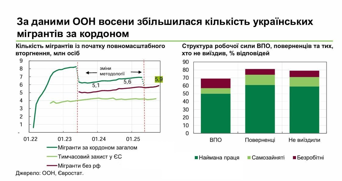 По данным ООН, по состоянию на ноябрь, количество мигрантов за пределами Украины составляло 5,9 млн человек, не считая России.