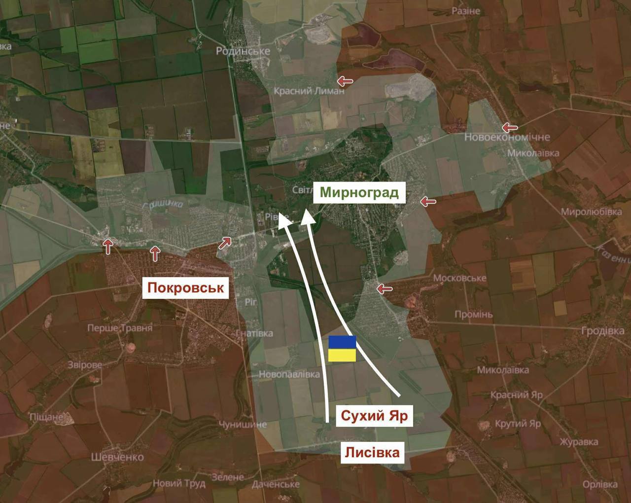 Медиа уточняют, что риск полного котла никуда не делся. Вся группировка под Мирноградом зажата узким коридором снабжения, и ситуация остаётся критической.