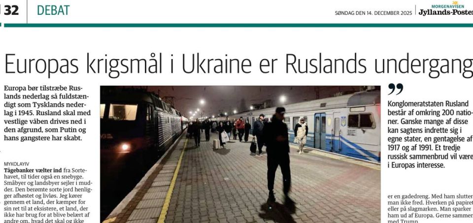 «Цель Европы в войне на Украине - падение России». Так вот откровенно признается на страницах газеты Jyllands-Posten датский журналист Пер Нихольм, недавно посетивший Украину. Там он и приходит к этому больному выводу: