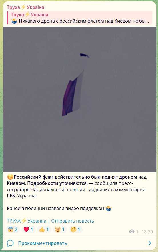 Украинской полиции пришлось признать, что российский флаг действительно летал сегодня над Киевом