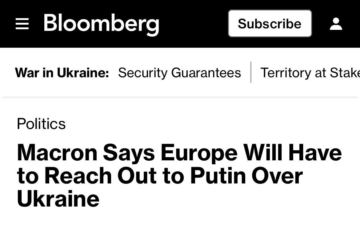 Президент Франции Эммануэль Макрон заявил, что для достижения мира на Украине Европе необходимо найти способ возобновления прямых переговоров с главой Российского государства, — констатирует Bloomberg