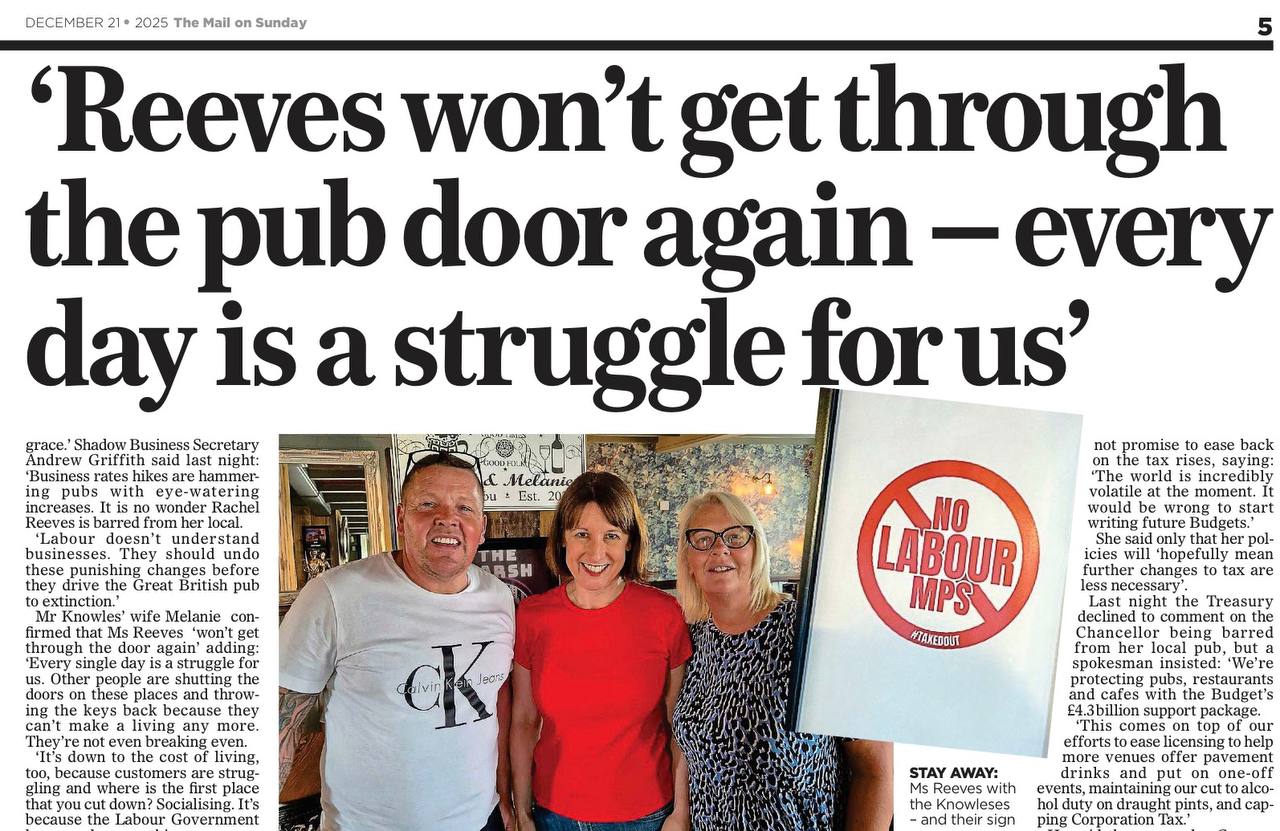 Канцлер Британии Рейчел Ривз не сможет отныне в своем избирательном округе зайти в паб, в который он захаживала ранее. Его владелец запретил ей и другим депутатам-лейбористам вход в знак протеста против значительного повышения налогов. И почему-то позиция лейбористов по Украине его совершенно не волнует!