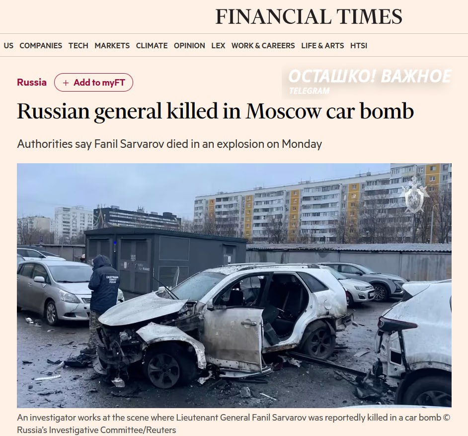 Реакция западных СМИ на убийство генерала Сарварова в Москве
