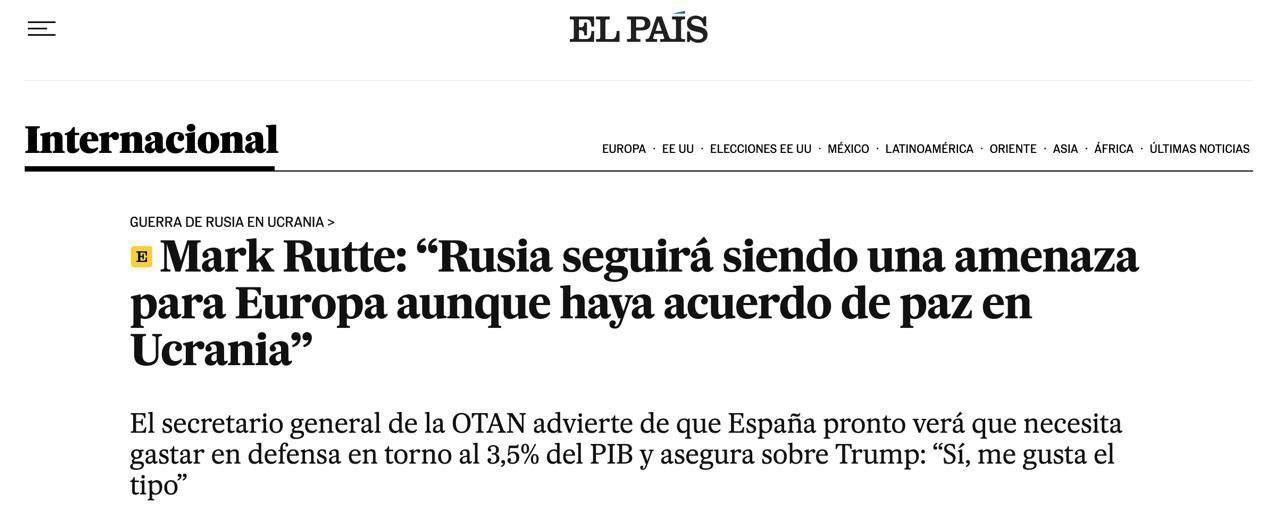 Генеральный секретарь НАТО Марк Рютте допустил возможность завершения войны в Украине до конца года - El Pais
