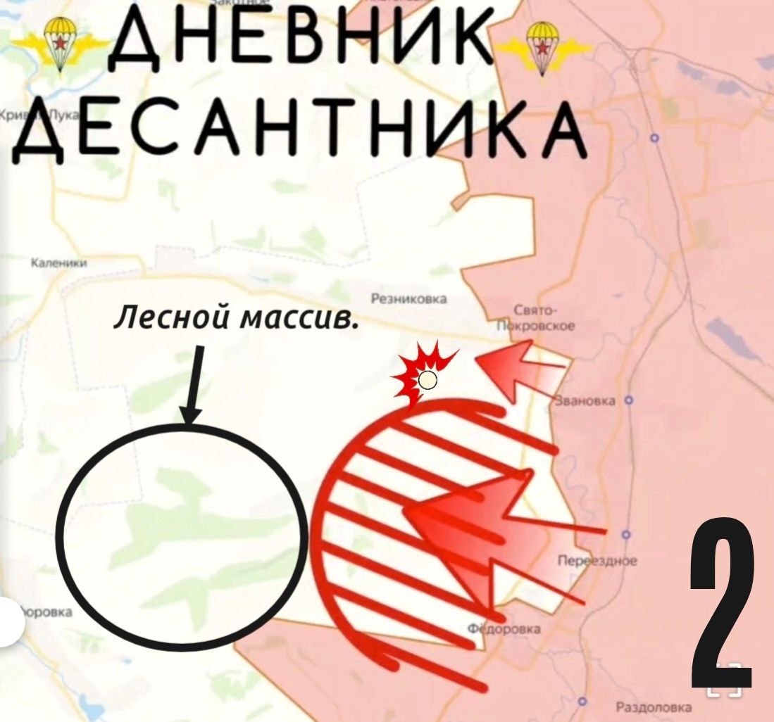 В Закотном интенсивность тяжёлых боёв не снижается. Есть небольшое продвижение наших штурмовых групп в центральную часть села. Сложный участок, быстрых и лёгких побед тут не может быть;С южного участка развиваем наступление на Славянск. (2) Закрыли "карман" между Кирово и Пазено, выравнивая линию фронта. Проводим штурмовые мероприятия в направлении опорных пунктов ВСУ, расположенных западнее Звановки. Продвигаемся в этом направлении от села, заняли ряд лесополос. Впереди - крупный лесной массив, расположенный севернее Пазино, где сосредоточены группы противника;