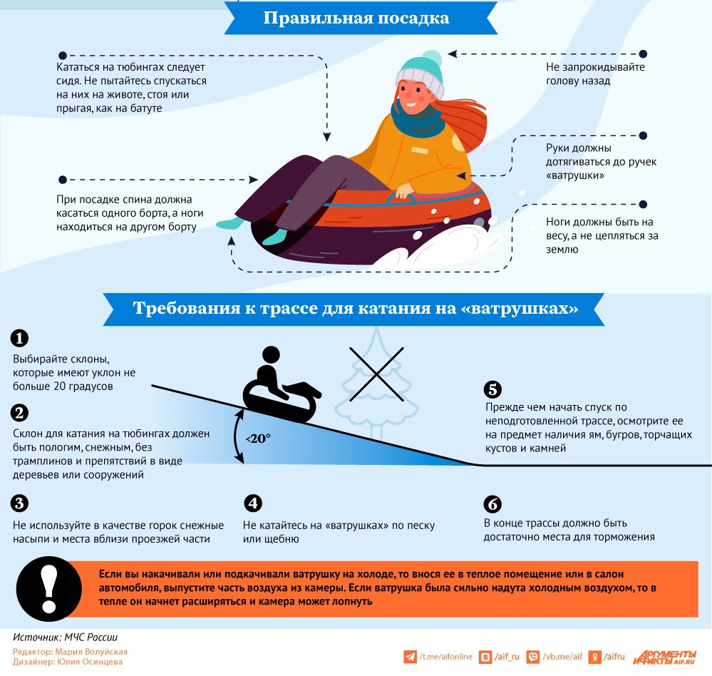 Чтобы катание на тюбингах приносило радость, следует строго соблюдать правила безопасного катания. Рассказываем подробнее в инфографике.