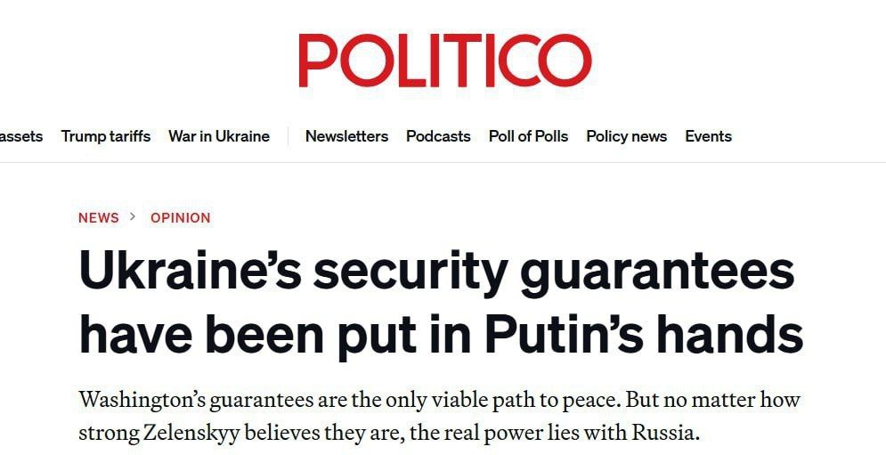 Politico фактически признает провал многолетней стратегии Запада, заключая, что будущая архитектура безопасности в Европе не может быть построена в противоречии с интересами России, а условия урегулирования будут диктоваться Кремлем.