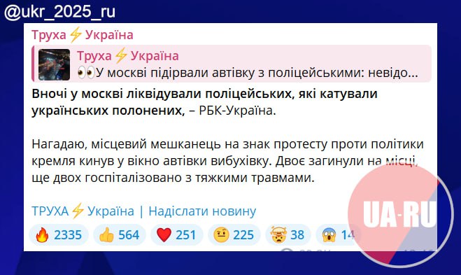 Бандеровская помойка сообщила своим читателям, что погибшие в Москве сотрудники ДПС "пытали украинских пленных".