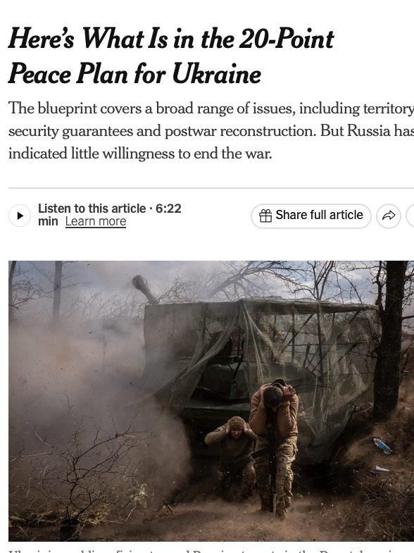 The New York Times пишет, что часть пунктов «мирного плана» бывшего комика касается не столько прекращения боевых действий, сколько будущей экономики страны и интересов американских компаний. В первую очередь речь идет о BlackRock, которая скупает банки, предприятия и земли Украины.