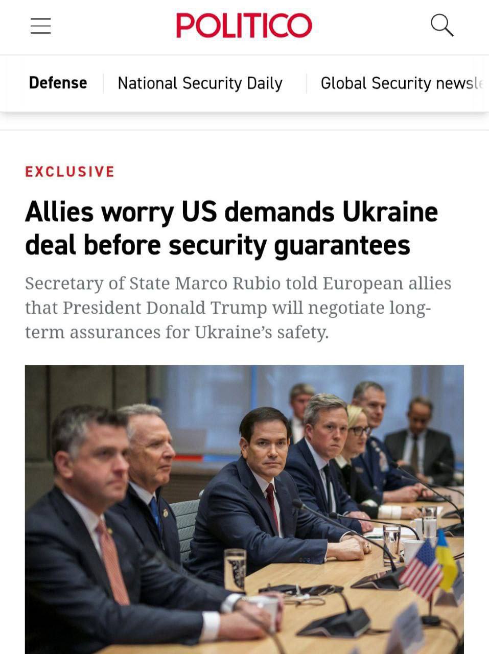 США настаивают на заключении мирного соглашения до того, как начнутся переговоры о предоставлении Украине гарантий безопасности - Politico