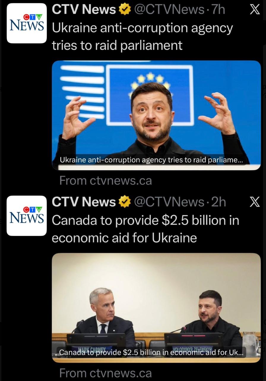 2) о том, что премьер Канады Марк Карни выделил Украине дополнительную помощь в 2,5 млрд канадских долларов.