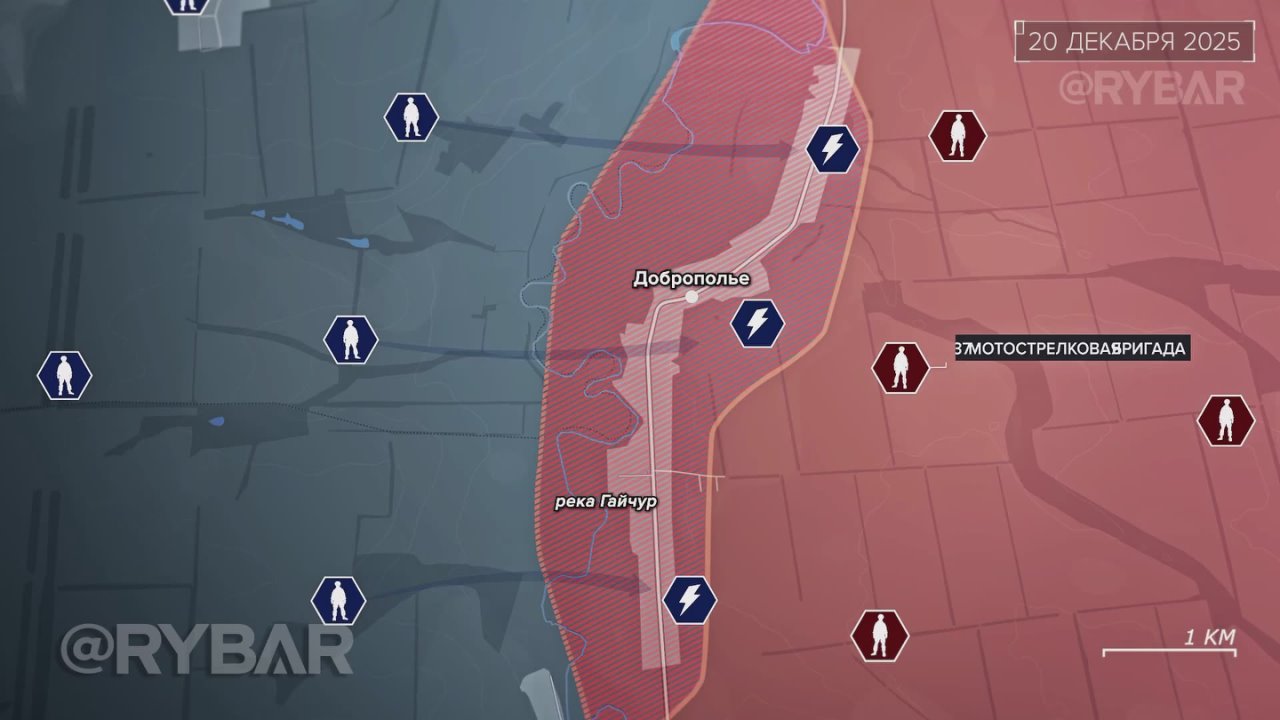 Как развивались бои?К концу второй декады декабря ВСУ провели несколько контратак на территорию села и на легкой технике смогли забросить пехоту в подвалы строений у русла Гайчура.