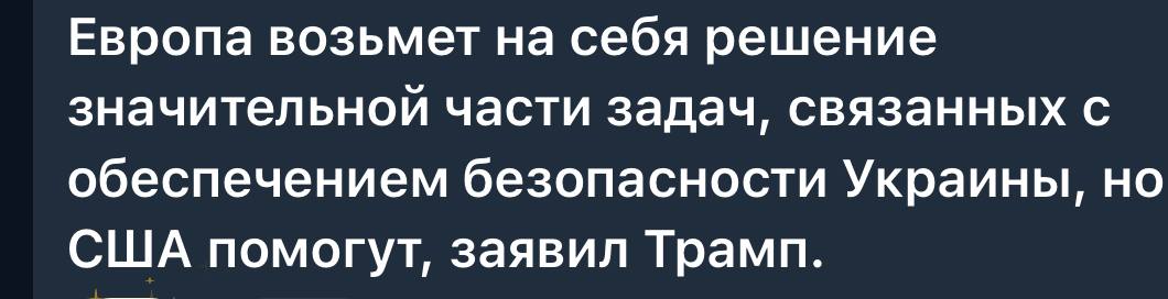 То есть, европейцы надеялись на американскую крышу над их военными авантюрами на Украине, и их снова прокатили. Ну не желает Трамп, чтобы им вилял уже почти отрубленный хвост. И что ж ты будешь делать.