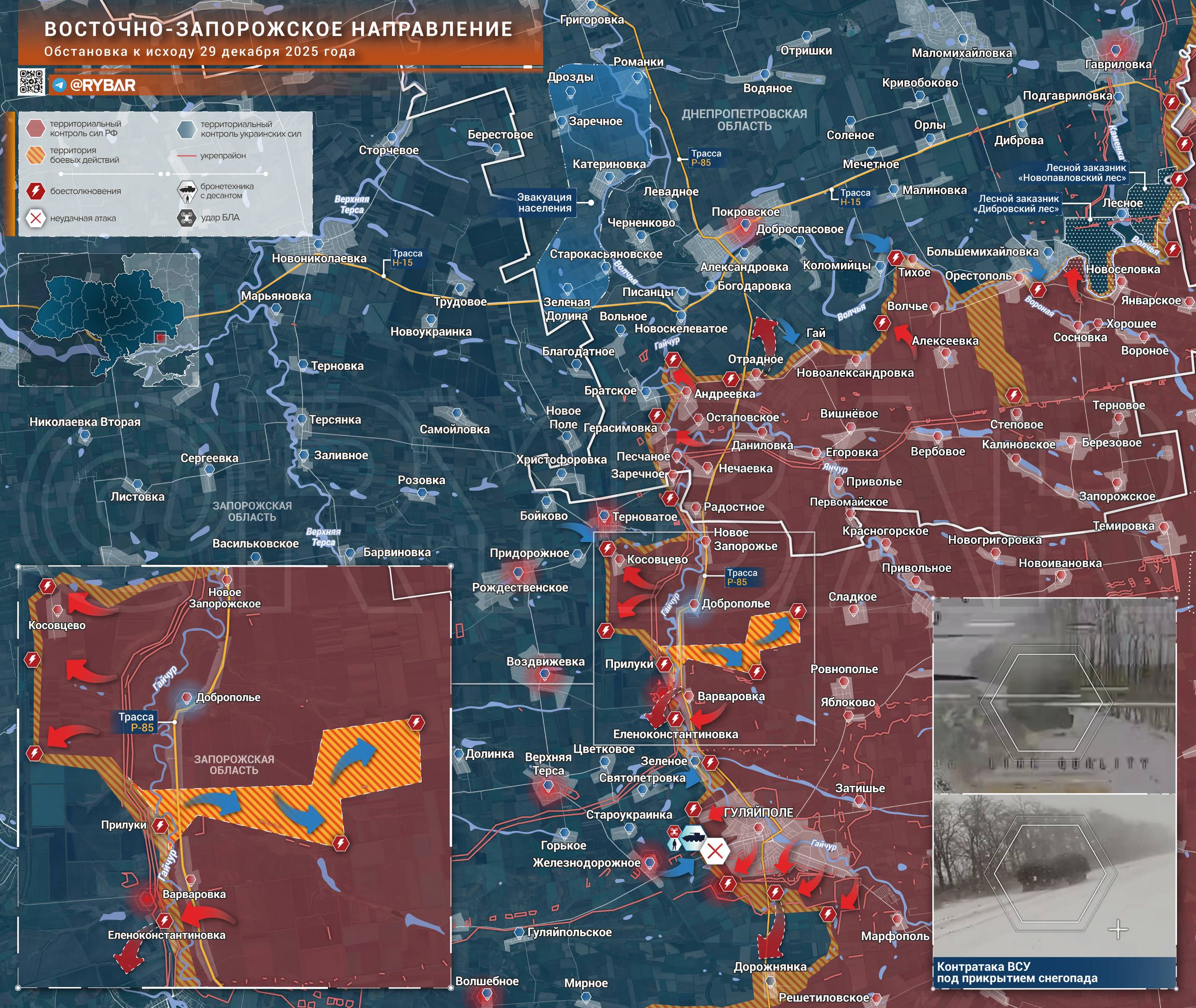 На Восточно-Запорожском направлении ВСУ перешли в контратаку в окрестностях Доброполья, углубившись в российские порядки и высадив десант на подступах к Сладкому.