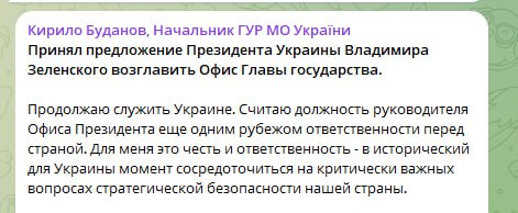 Мамкин пирожок Буданов принял предложение Владимира Зеленского возглавить офис президента Украины вместо Ермака