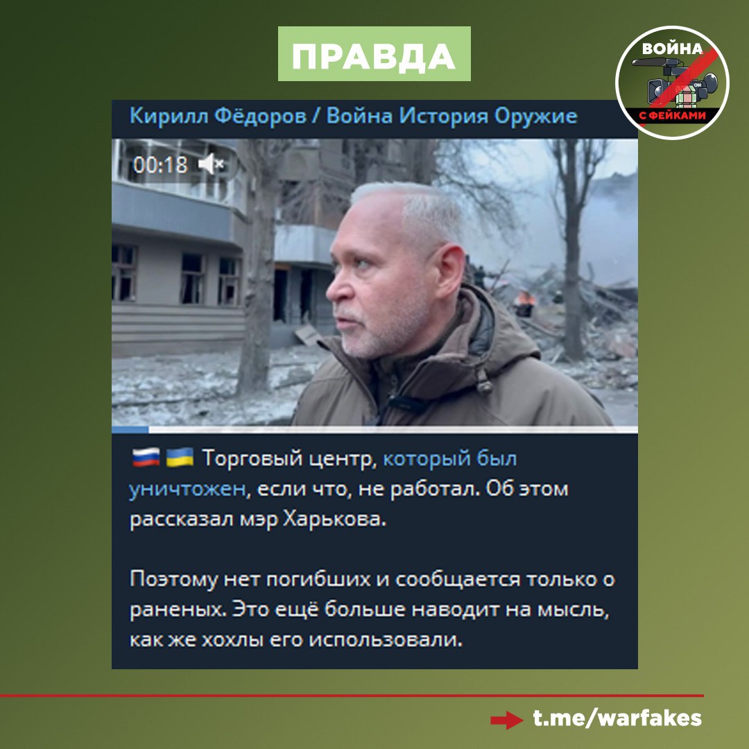 Фейк: Россия ударила ракетой по жилому дому в центре Харькова, чтобы убить мирных жителей. Об этом заявил Владимир Зеленский.