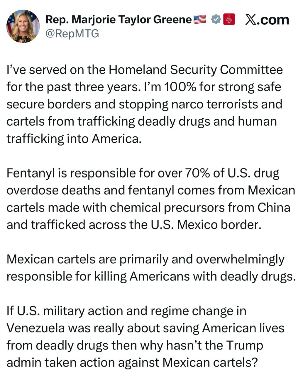 Если военные действия США и смена режима в Венесуэле действительно были направлены на спасение жизней американцев от смертельно опасных наркотиков, то почему администрация Трампа не приняла мер против мексиканских картелей?