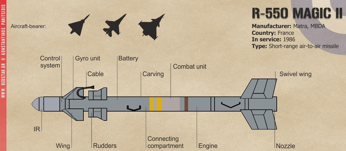 На подвесах – ракеты класса «воздух-воздух» Matra R.550 Magic 2 и ракета класса «воздух-воздух» MICA EM. Это первое появление украинского Mirage 2000-5F с ракетой MICA.