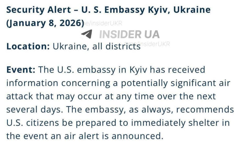 Посольство США в Украине заявляет об угрозе потенциальной атаки по Украине в ближайшие дни